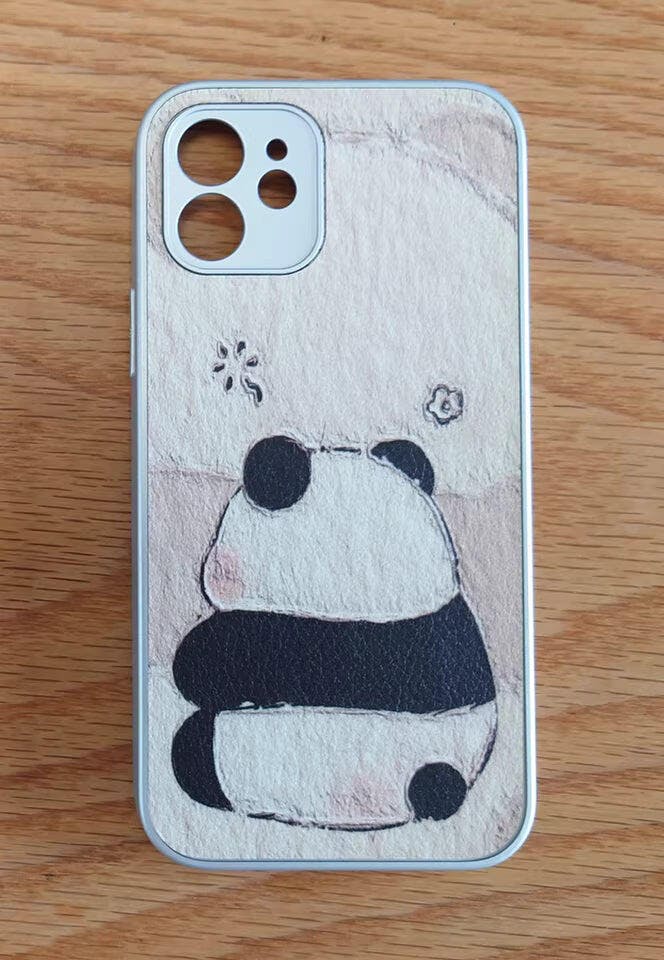Minimalist Panda Vegan Leather iPhone Case | Soft Sheepskin Texture & Slim Fit
